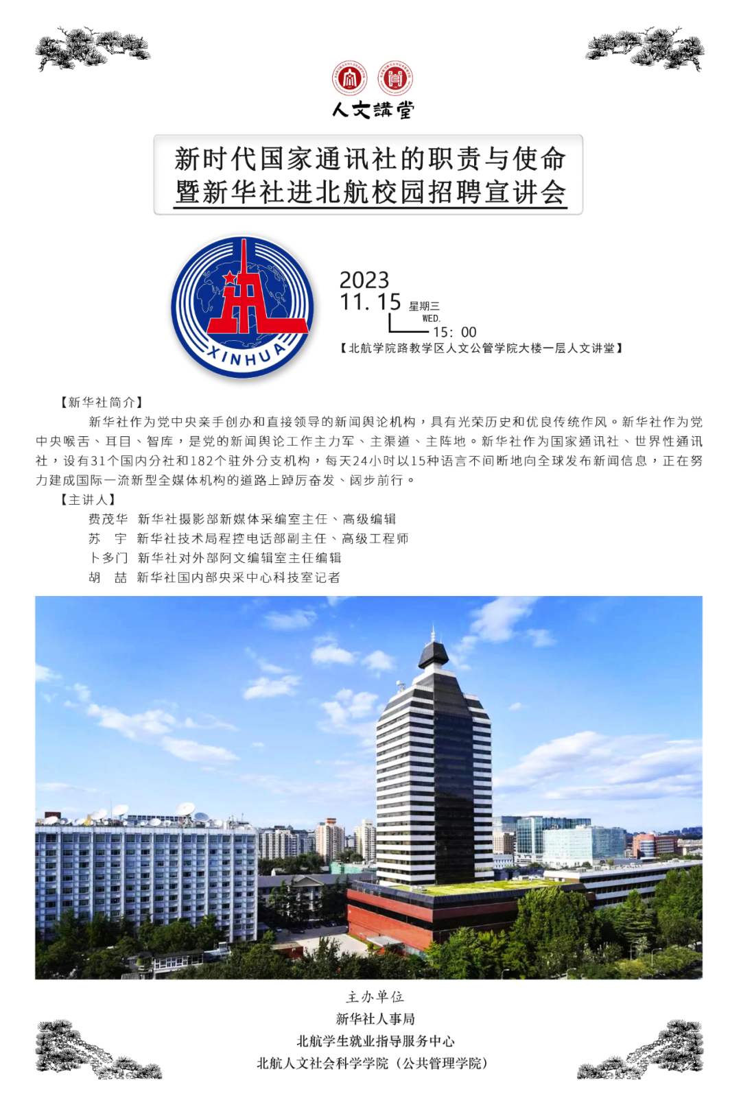 主办方:新华社人事局 北航学生就业指导服务中心 北航人文社会科学学院(公共管理学院)