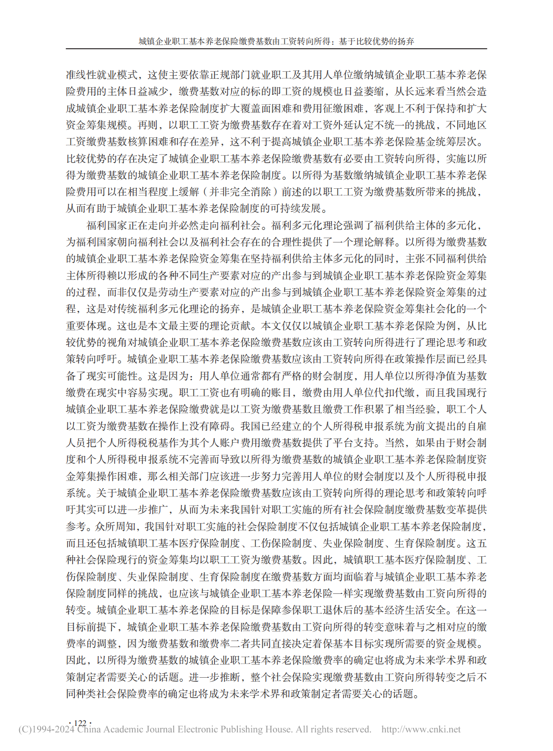 【关键词】城镇企业职工基本养老保险;缴费基数;工资;所得;比较优势;