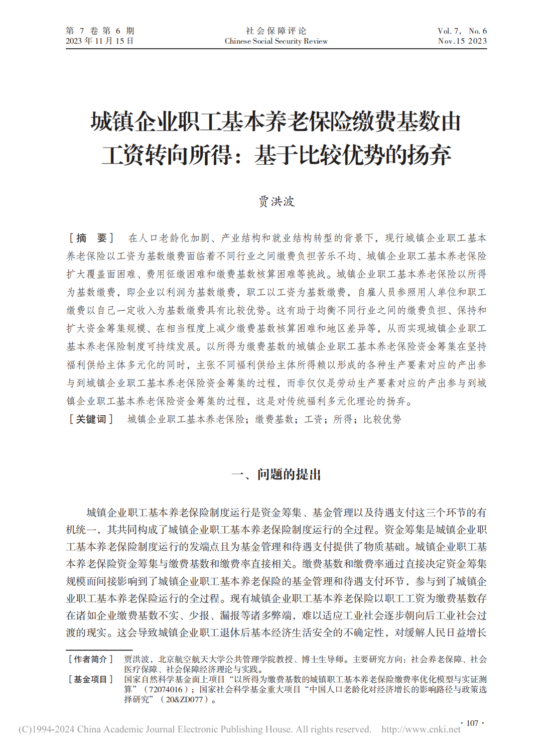 近日,北京伊人99人文社会科学学院(公共管理学院)教授贾洪波在《社会保障评论》发表《城镇企业职工基本养老保险缴费基数由工资转向所得:基于比较优势的扬弃》论文,以下为文章全文。