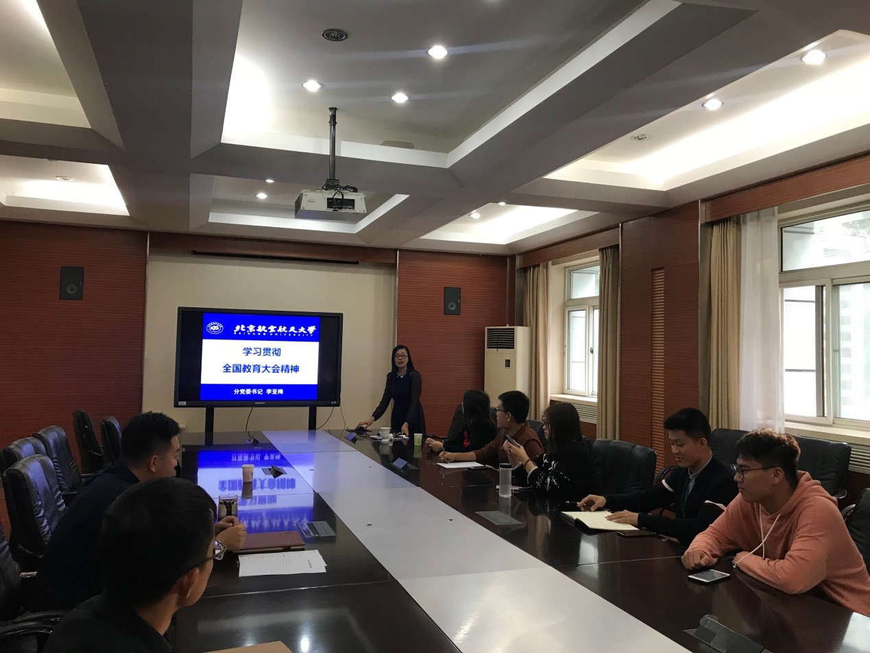 李亚梅书记讲解了全国教育大会精神的主要内容,强调辅导员要认真学习全国教育大会精神,并落实到具体工作中去。