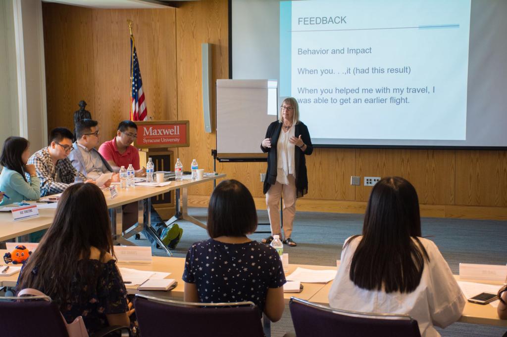 下午1点,由冲突与合作项目主任、高级公共管理教育副主任——杰勒德女士,带来主题为“人际关系冲突管理”的工作坊。杰勒德女士有多年州政府工作经验,深谙政府部门间协作式管理的重要性和技巧。主要从公共管理角度,及解决冲突的技巧两方面来展开。通过让学员们亲自参与实践模拟,加深了对反思式倾听、利益质询等方法的理解,并能熟练利用。