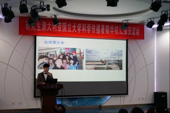 汇报会的第二个环节是学生代表展示。同学们的展示内容丰富多彩,多角度、全方位展现了在澳大利亚国立大学公众科学意识中心的学习生活和收获感想。