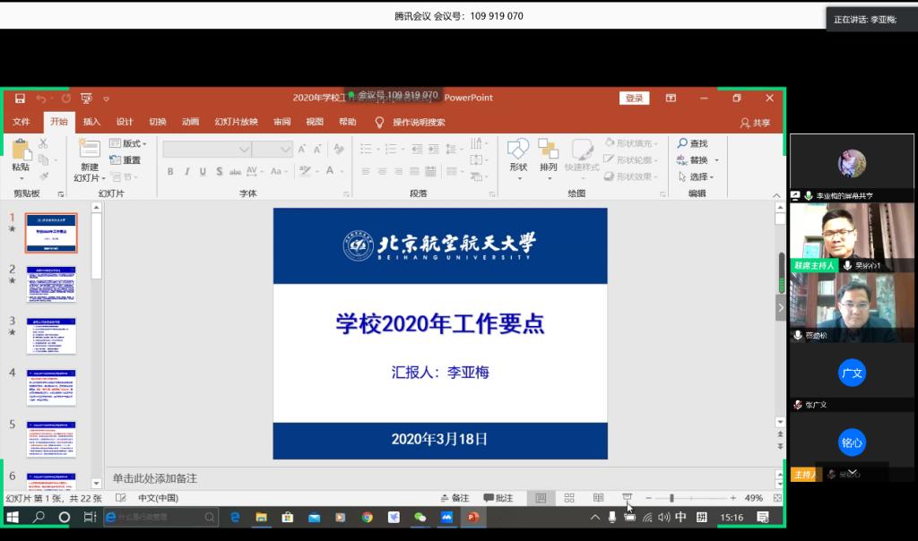 本次视频会议在疫情防控期间召开,对全体教职工了解学校和学院2020年度工作的重点,明确新学年的各项任务起到了统一认识、团结鼓劲的作用,有利于扎实有效地推进学院未来可持续发展。