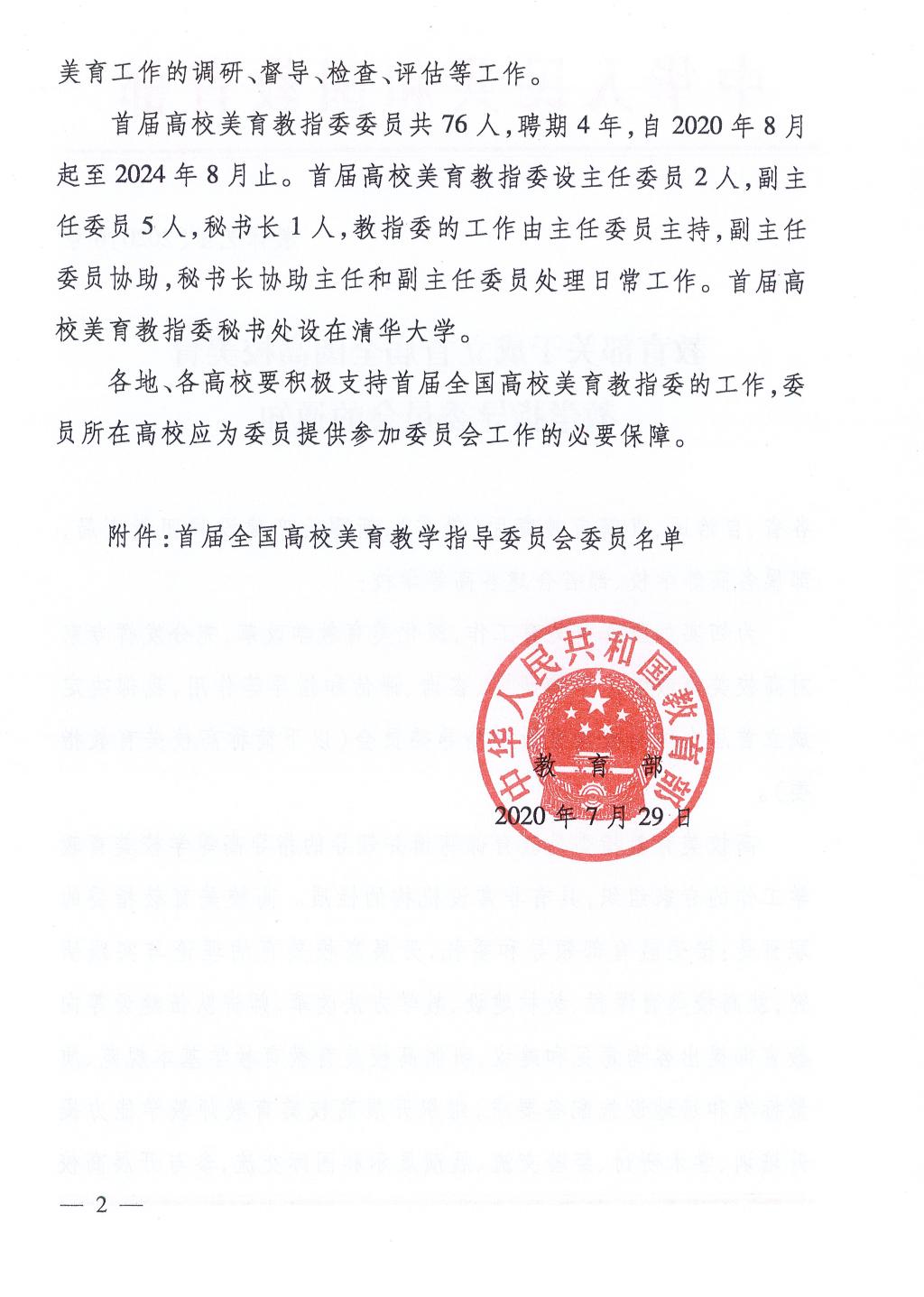 为切实落实高校美育工作,改革与提升美育教学的质量,经省级教育厅、学校和教育部艺术教育委员会推荐,教育部审核遴选,我校人文学院艺术教育中心苏丹娜教授,入选“首届全国高校美育教学指导委员会“。
