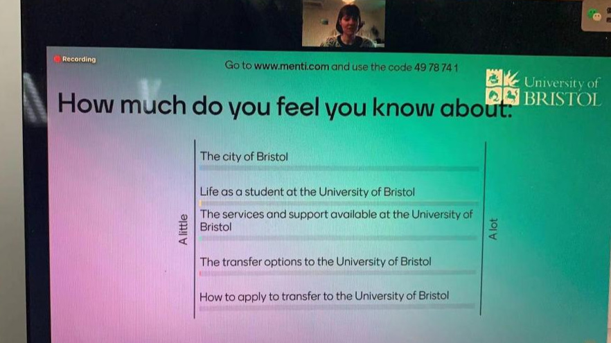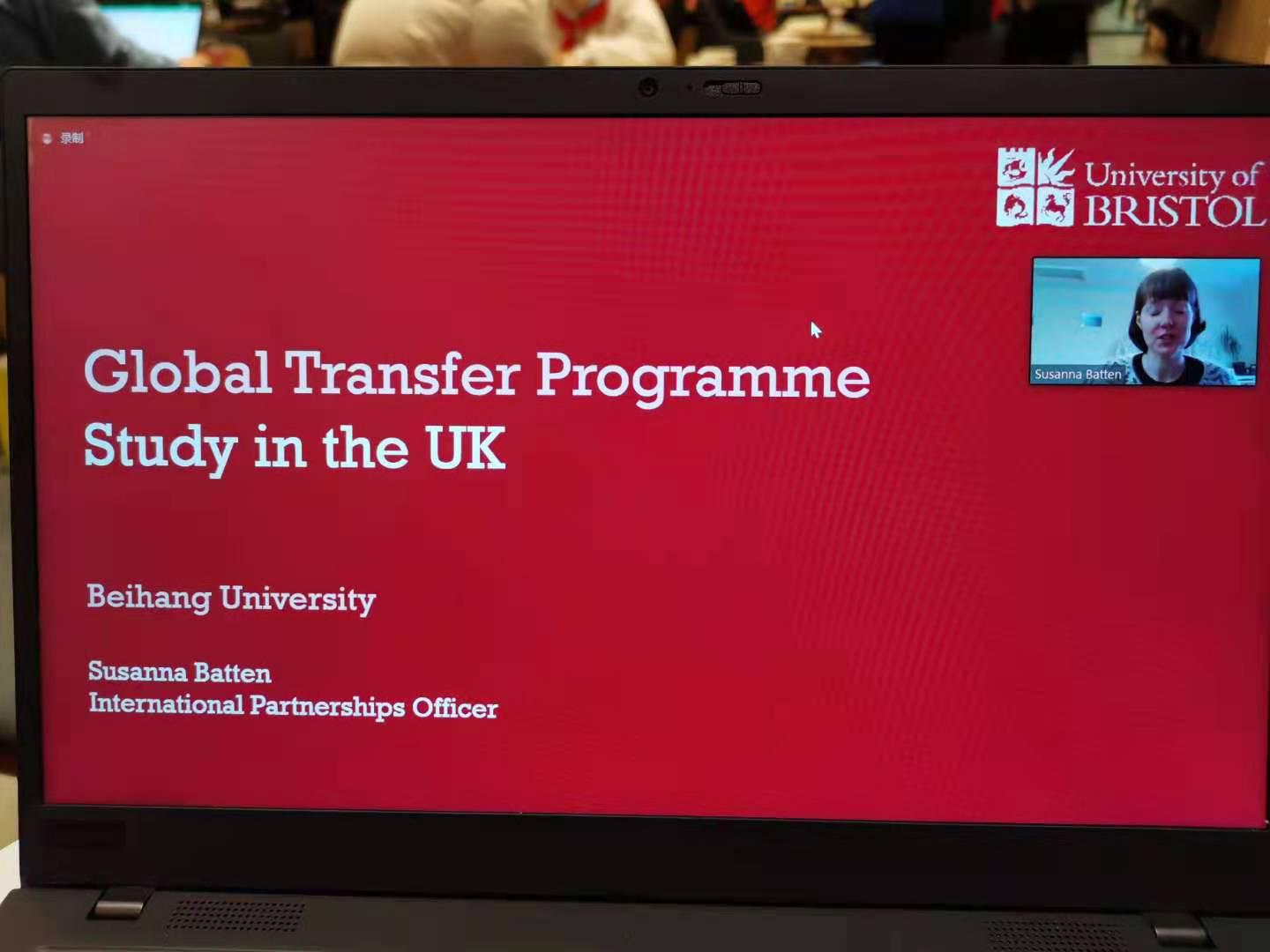 2020年12月11日晚,英国布里斯托大学国际办公室官员Susanna Batten代表布里斯托大学以及布大政策研究学院在线上为我院大三,大四学生进行了全球交换项目(Global transfer programme)的宣讲,并为对布里斯托大学公共管理类硕士有兴趣的学生进行了申请辅导。我院聂晨老师参加了此次线上宣讲活动。