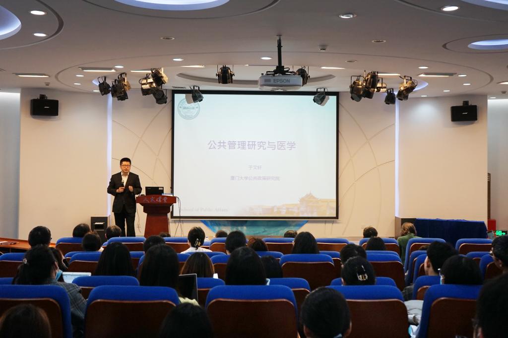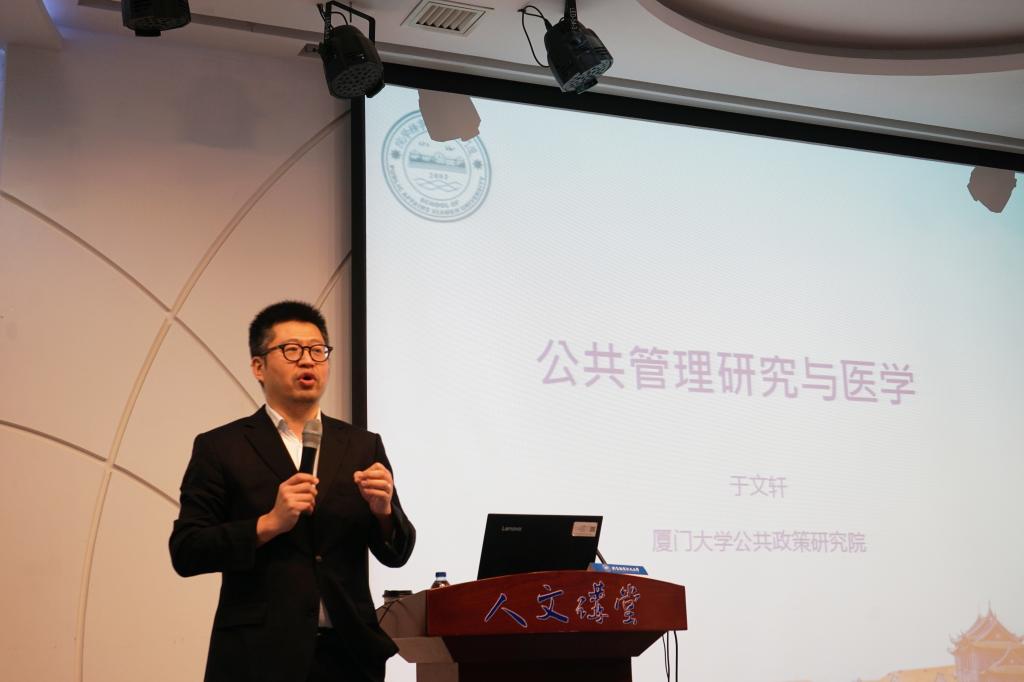 4月22日,北航“人文讲堂”学术前沿系列讲座在人文社会科学学院(公共管理学院)人文讲堂举行。本次讲座邀请了美国罗格斯大学(Rutgers University)公共管理学博士,厦门大学公共事务学院/公共政策研究院特聘教授于文轩作题为“公共管理研究与医学”的学术前沿讲座。讲座由人文社会科学学院(公共管理学院)院长蔡劲松教授主持。