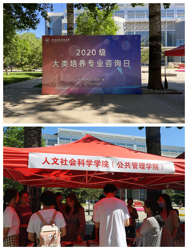 6月5日上午,“2020级大类培养专业咨询日”活动在学院路校区求是广场举办。人文公管学院分党委书记王琪全带领经济学系系主任沈映春、行政管理系系主任涂晓芳、经济学系及行政管理系教师代表以及本研学生代表参与活动,为文科大类大一学生现场提供专业答疑与指导交流。