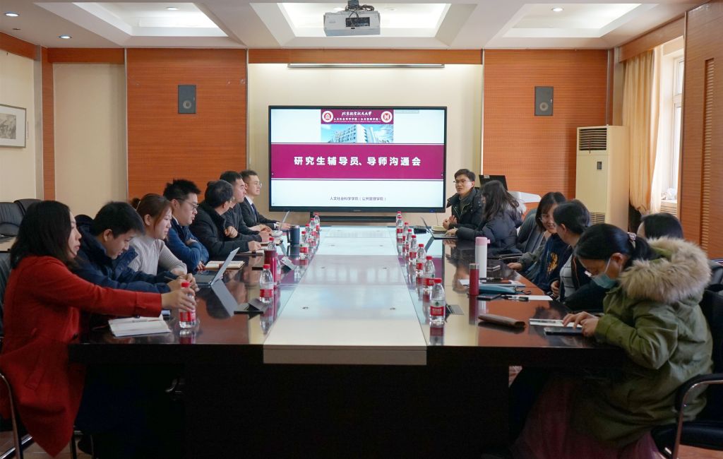12月17日下午,人文社会科学学院(公共管理学院)本年度第4次研究生辅导员、导师沟通会于202会议室召开。与会老师就研究生学业发展、导学关系、毕业就业、心理健康等方面问题进行了深入探讨。学院党委书记王琪全,党委副书记张驰,副院长、MPA教育中心主任陈文博,研究生辅导员与导师代表出席。