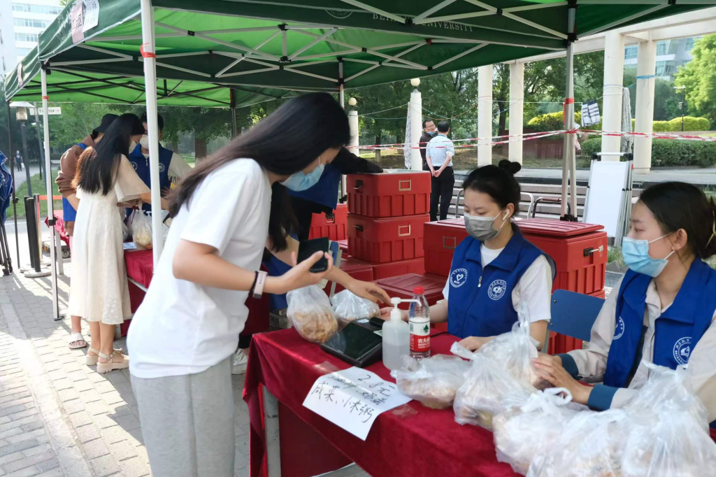 2022年5月23日,在海淀区疫情管控升级,北航“取消堂食,改为打包”的第一天,人文学院本科生第二党支部党员同志们积极响应学校“自我管理,自我服务”的号召,全力配合大运村早餐供应保障试运行工作。