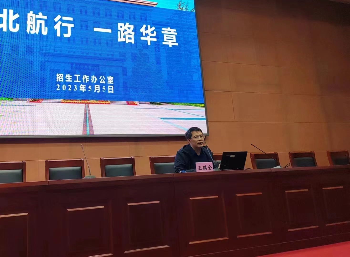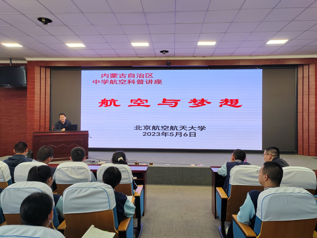 在呼市二中,与王维真校长等深入探讨招生工作,进行优质生源基地校签约揭牌仪式,并参加高中生合唱节;邓怡主任面向高三家长作题为《向北航行 一路华章》招生讲座,王琪全组长面向高二学生作题为《航空与梦想》科普讲座。