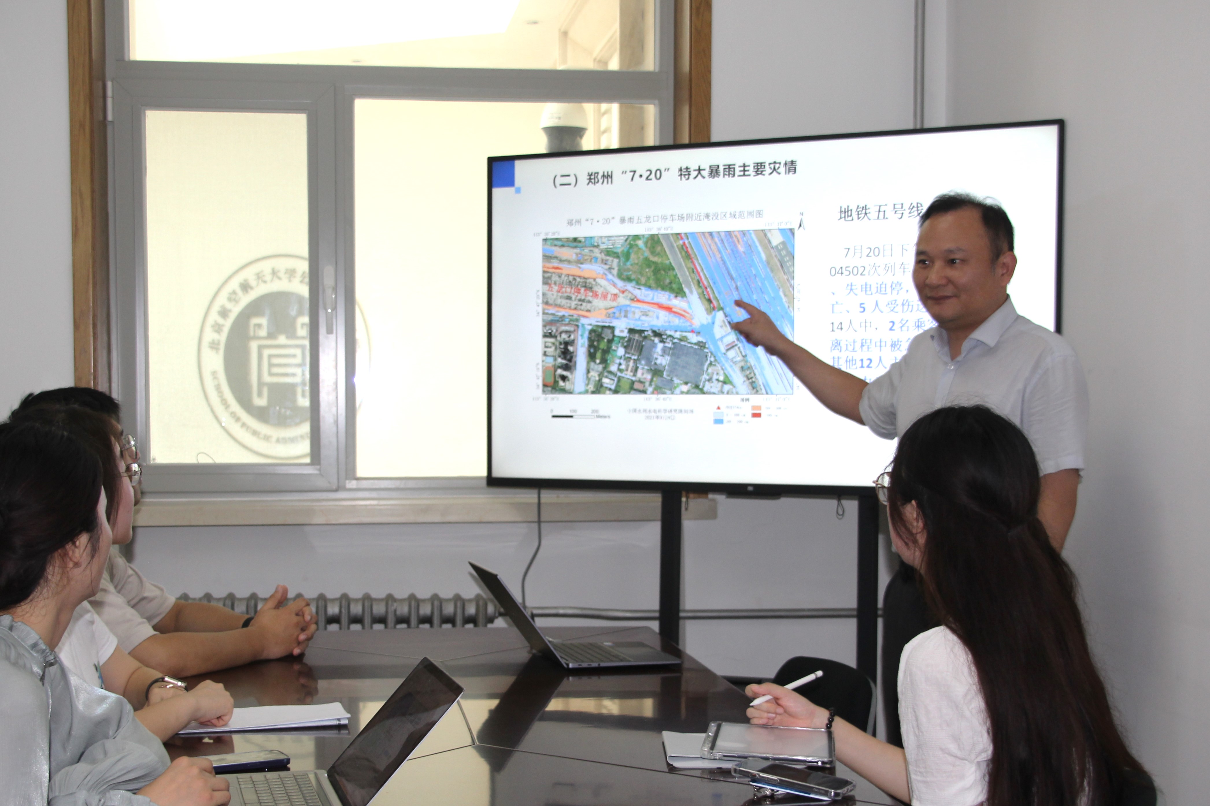 此次调查工作时间紧迫、任务艰巨,我同时担任多门课程教学并负责博士、硕士培养工作。参与调查评估工作期间,我数次往返于北京与郑州,既以专业知识服务于调查评估,又要高质量完成教学科研工作。于是我尝试进行融合式教学,将调查工作素材转化为教学资源。以此次灾害为例,我与科研团队探索开发了情景模拟教学课件。如今,相关课程已上线国家行政教育学院的学习公社平台。