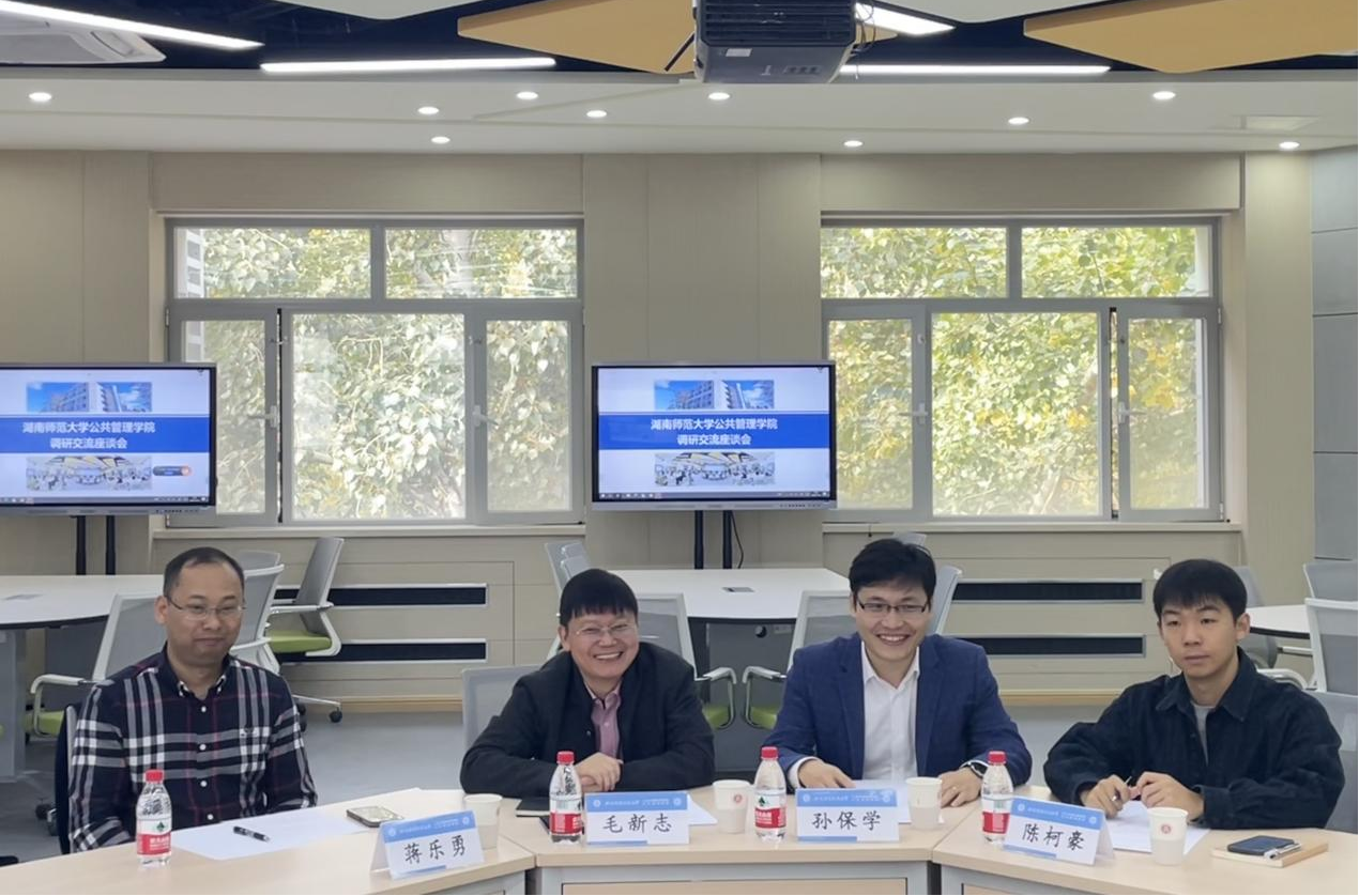 毛新志院长介绍了湖南师范大学公共管理学院的人才培养、学科发展以及科研平台建设等情况。