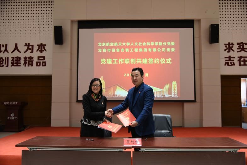 为深入学习贯彻习近平新时代中国特色社会主义思想和党的十九大精神,全面开拓基层党建新思路、新模式。2018年11月16日,北航人文社会科学学院分党委与北京市设备安装工程集团有限公司党委携手开展“走进首都国企”校企合作暨党建联创共建活动。