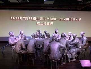 随后全体党员共同抵达中共一大会址,在这里大家依次参观了不同展馆,又一次回顾了我们伟大党的诞生历程。除了学习中国共产党成立的历史背景、早期活动及影响,又再次重温了中国共产党第一次全国代表大会召开的全过程。令人印象深刻的是一组蜡像,它再现了出席中共一大会议的15位与会者围桌而坐、热烈讨论的生动场景,逼真而写实,仿佛让我们回到了那个激情澎湃的时代。