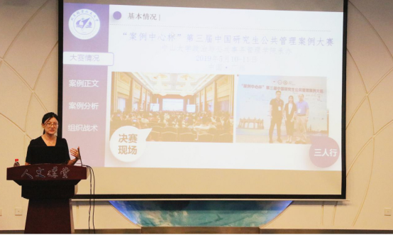 MPA任课教师代表马琪做了题为《全国MPA案例大赛的体会与思考》的报告。她结合案例大赛情况指出,我院团队与获奖团队存在组织支持、团队建设、经验、战术等方面的差距。随后,马老师详细阐述了自己对参赛的案例正文、案例分析和组织战术的思考,并建议加强学生选拔、成立双(多)导师配合制、完善信息共享和学习培训。